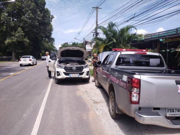 ให้ความช่วยเหลือรถประชาชนแบตเตอร์รี่หมด สตาร์ทไม่ติด บริเวณหน้าร้านอาหารต้นค้อจึงได้พ่วงแบ...
