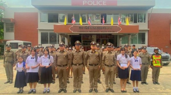 พ.ต.อ.ชาติชาย ทิมินกุล ผกก.สภ.จังหาร มอบทุนการศึกษาแก่บุตรธิดาข้าราชการตำรวจพร้อมทำพิธีประดับย...
