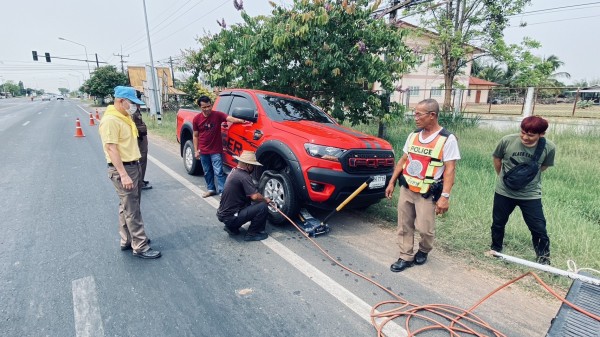 ข้าราชการตำรวจชุดเคลื่อนที่เร็วจิตอาสา สภ.จังหาร ทำการช่วยเหลือประชาชนรถยางแตก
