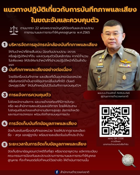 “แนวทางการปฏิบัติเกี่ยวกับการบันทึกภาพและเสียงในขณะจับและควบคุมตัวตามมาตรา 22 แห่ง พ.ร.บ.ป้องก...